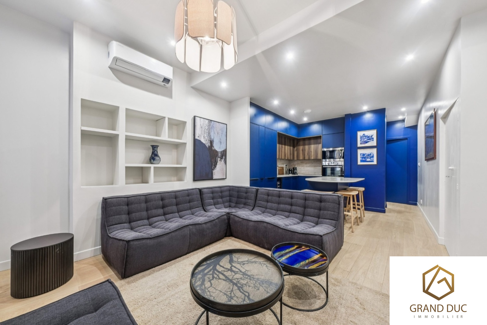 À louer – Superbe T2 meublé de 42 m² – Design & prestations haut de gamme Découvrez ce magnifique appartement T2 de 42 m², entièrement meublé et décoré avec soin, offrant des prestations modernes et une ambiance élégante aux tons bleu profond. Cuisine contemporaine de qualité, entièrement équipée avec électroménager intégré et cave à vin. Séjour lumineux, belles hauteurs sous plafond, parquet clair et décoration soignée.Chambre confortable et optimisée avec rangements.? Climatisation pour un confort toute l’année. Mobilier complet – logement prêt à vivre. Surface : 42 m² Loyer mensuel : 1 200 € Dépôt de garantie : 2 248 € DPE : C Appartement idéal pour un couple, un professionnel ou pied-à-terre de qualité. Disponible immédiatement.